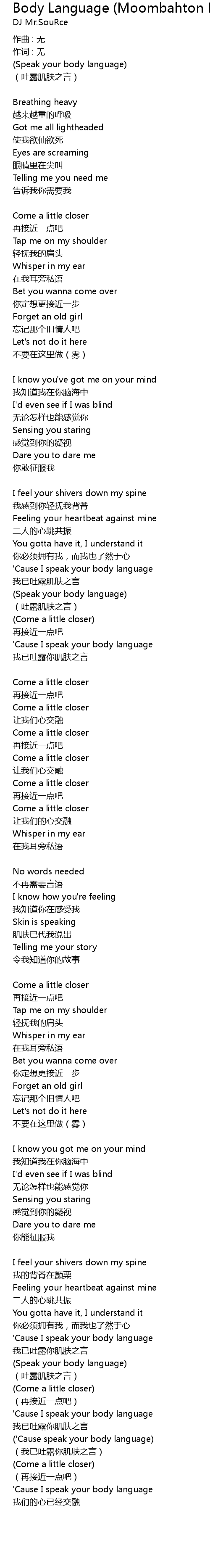 | Song | Body Language (Moombahton RMX) |