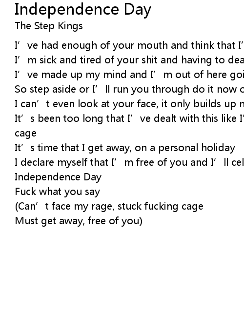 | I declare myself that I' m free of you and I' ll celebrate on this Independence Day | |