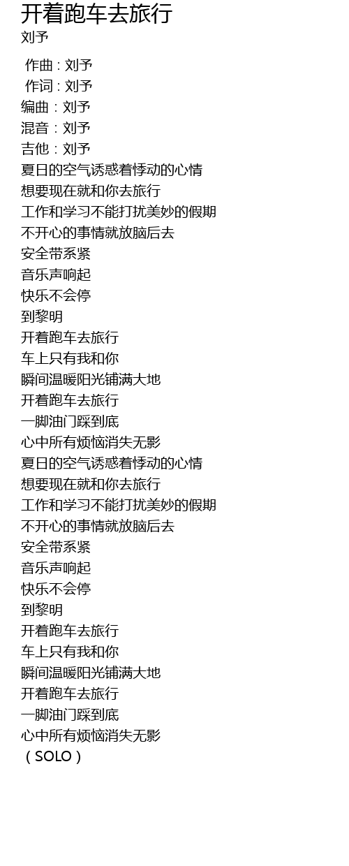 | [02:00.922] | kai zhe pao che qu lv xing |