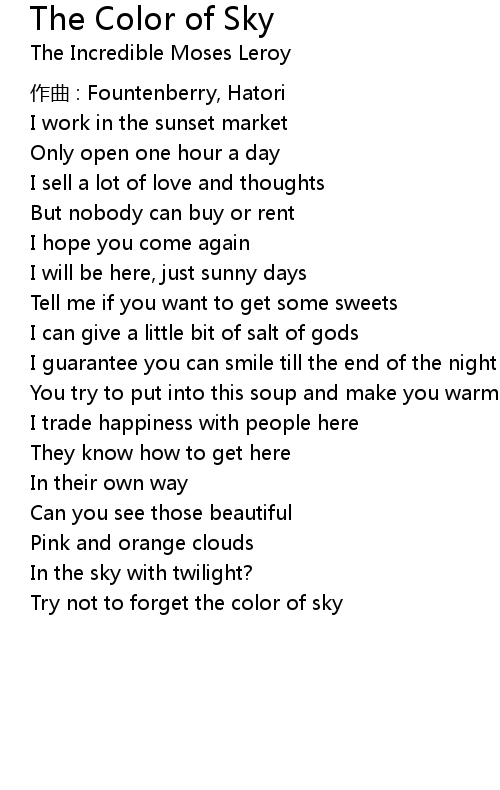 | Song | The Color of Sky |