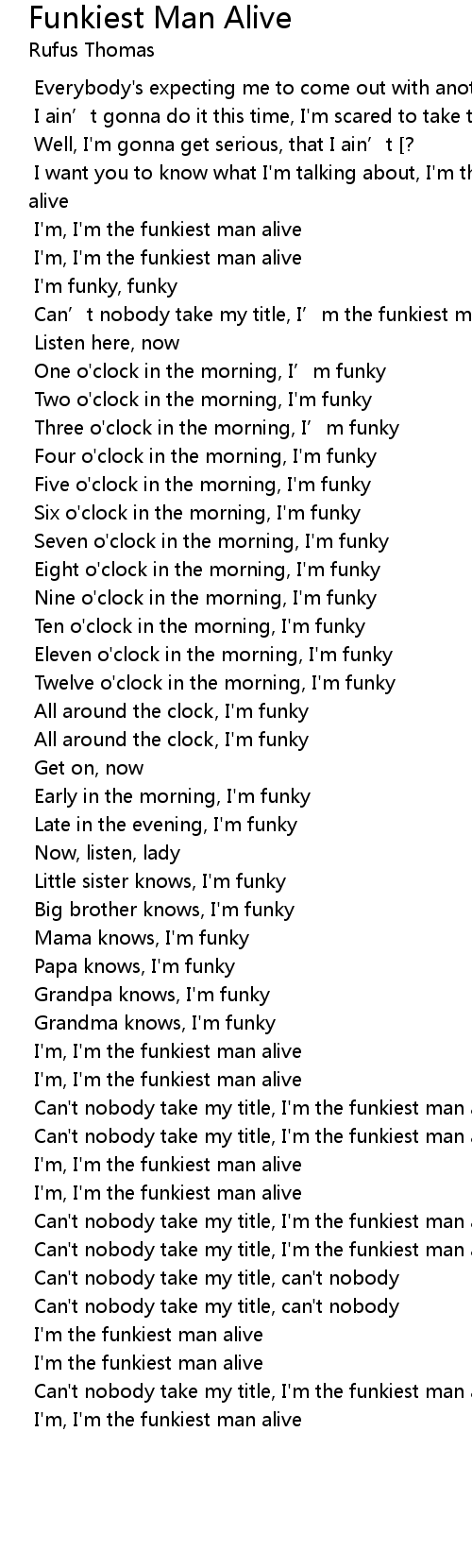 | [01:17.217] | Can’t nobody take my title, I’m the funkiest man alive |