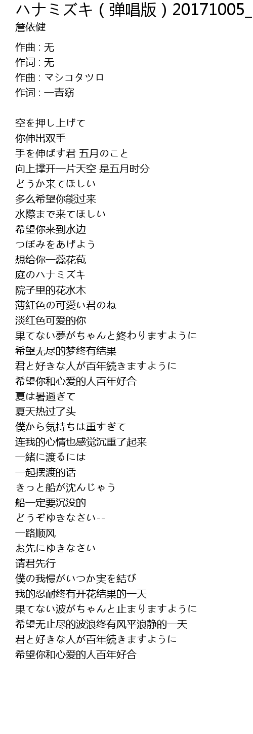 | Song | ハナミズキ(弹唱版)20171005_162730(Cover:一青窈) |