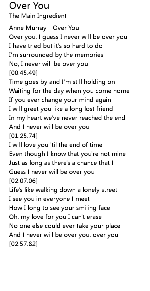 Over you, I guess I never will be over you |
