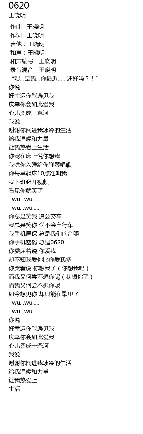 | [00:06.00] | he sheng bian xie: wang xiao ming |