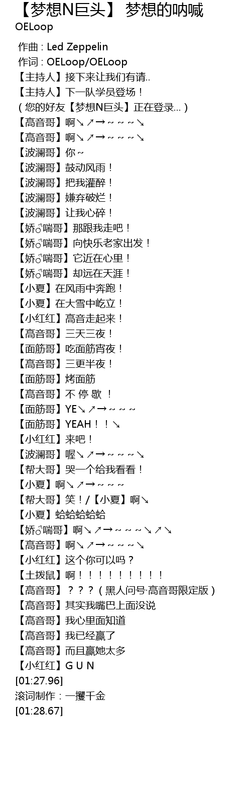 | [01:10.84] | 【高音哥】啊↘↗→~~~↘ |