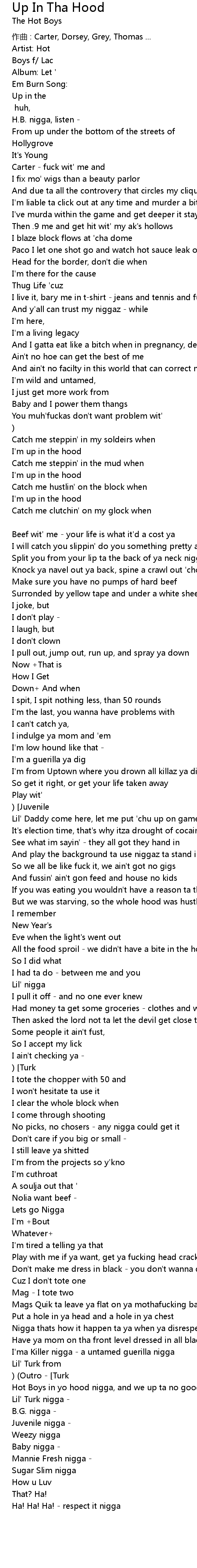 | Hot Boys in yo hood nigga, and we up ta no good nigga | |