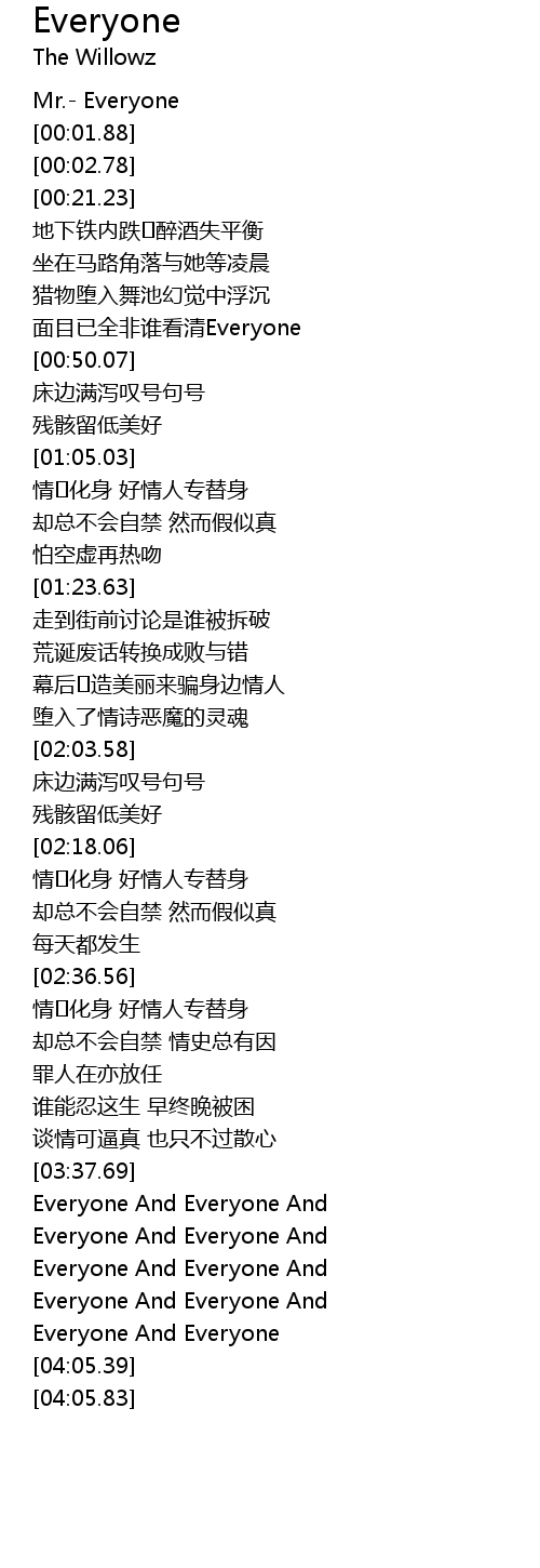 | [00:44.90] | 面目已全非谁看清Everyone |