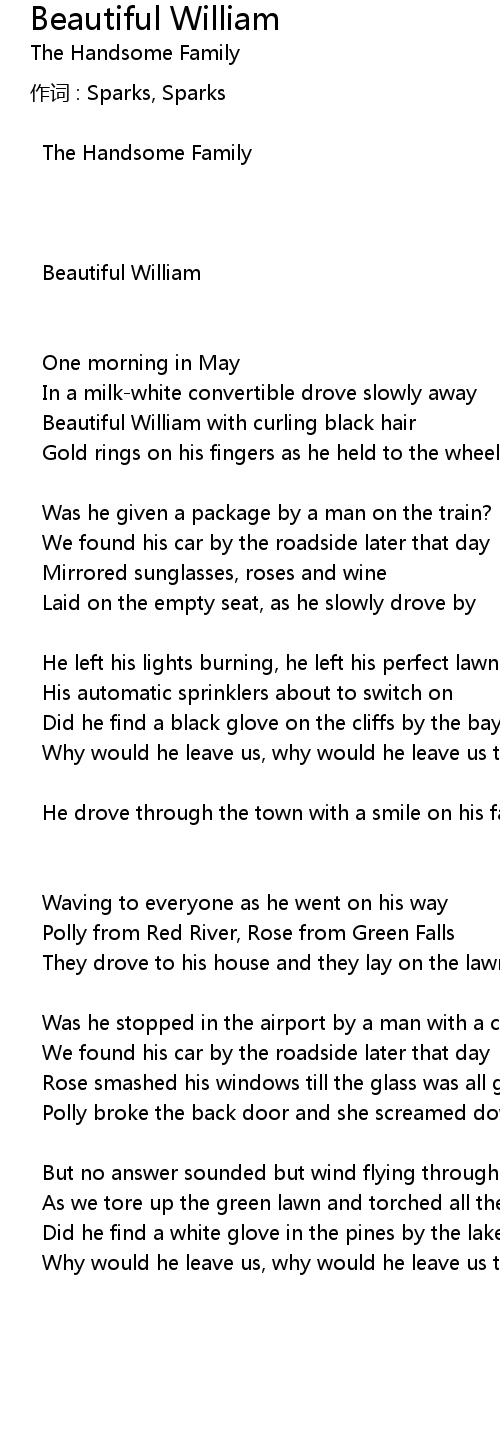 | Song | Beautiful William |