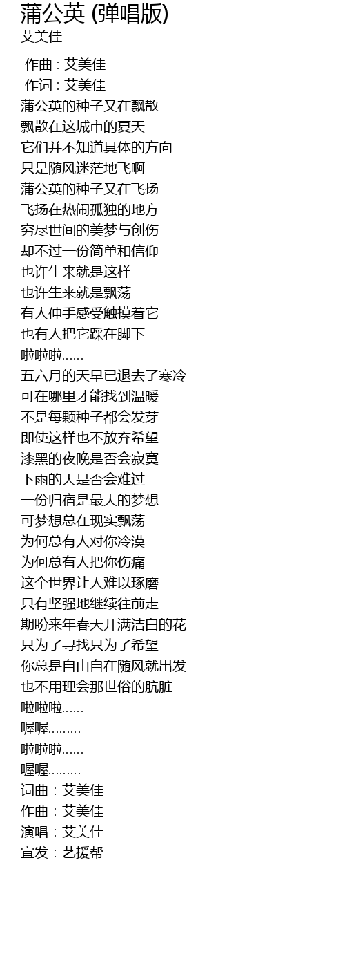 | [00:34.12] | 蒲公英的种子又在飞扬 |
