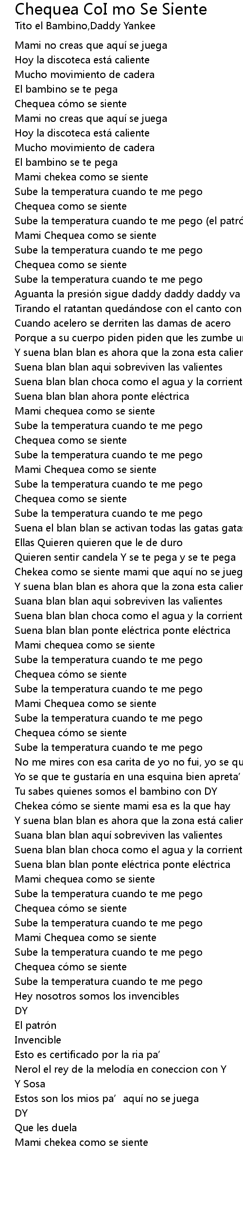 | [01:38.52] | Chekea como se siente mami que aquí no se juega |