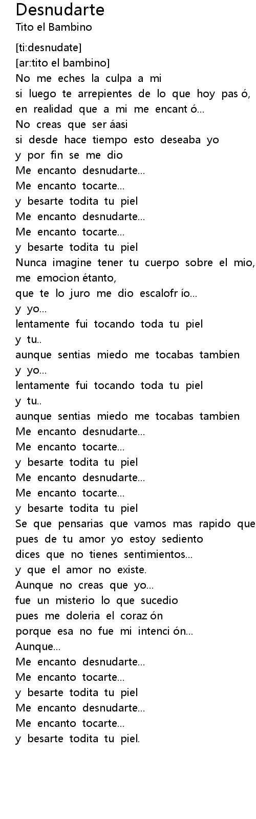 | [00:57.92] | Nunca imagine tener tu cuerpo sobre el mio, |