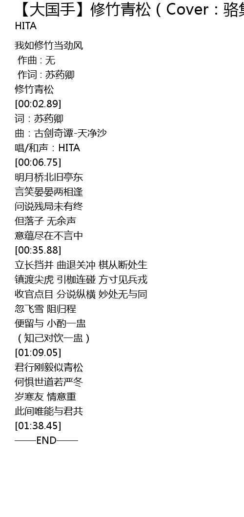 | [01:09.**] | wǒ rú xiū zhú dāng jìng fēng |