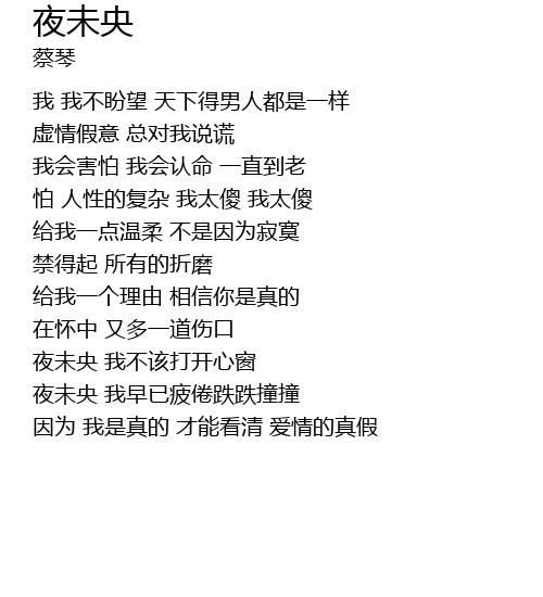 | [01:05.20] | 怕 人性的复杂 我太傻 我太傻 |