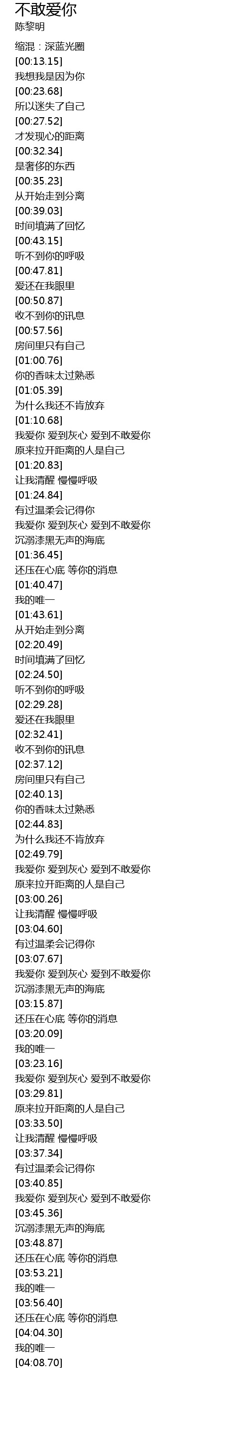 | [03:41.41] | 我爱你 爱到灰心 爱到不敢爱你 |