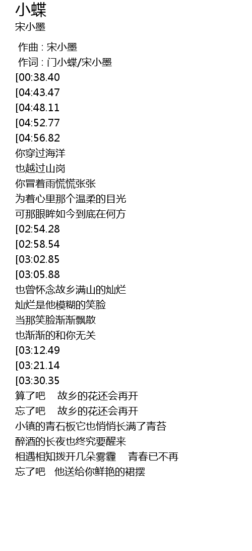 | [00:01.000] | 作词 : 门小蝶/宋小墨 |