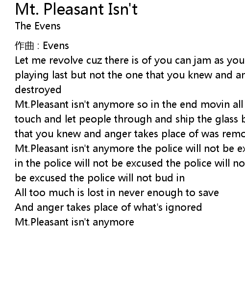 | Mt. Pleasant isn' t anymore so in the end movin all that pair a rum just bud and touch and let people through and ship the glass by playing last but not he one that you knew and anger takes place of was removed | |