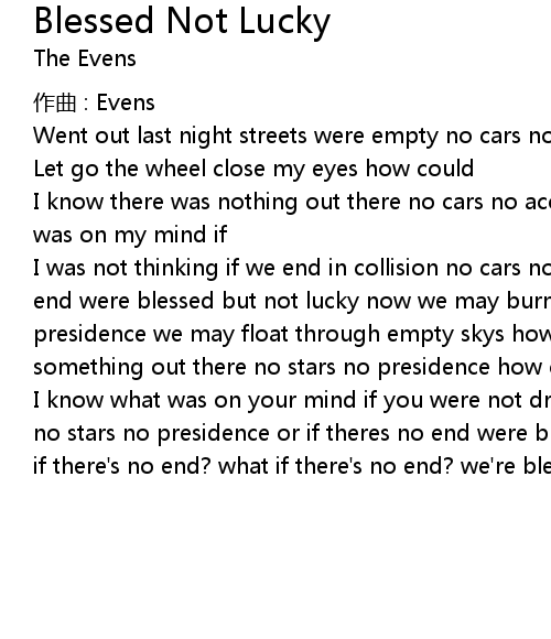 | I know what was on your mind if you were not dreaming too if we end in decision no stars no presidence or if theres no end were blessed but not lucky now what if there' s no end? what if there' s no end? we' re blessed but not lucky now |