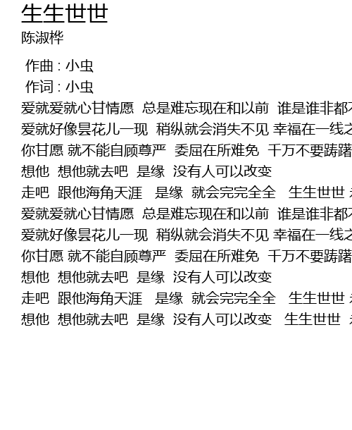 | [04:02.720] | 想他 想他就去吧 是缘 没有人可以改变 生生世世 永永远远 |