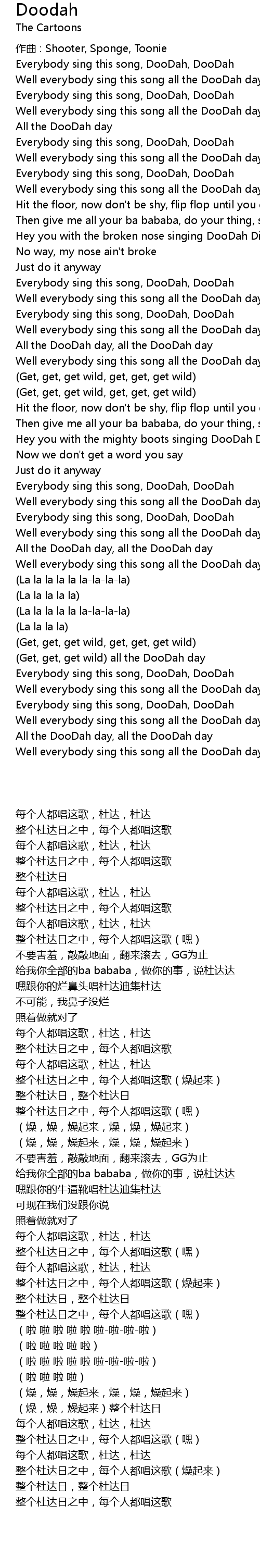 | Well everybody sing this song all the DooDah day (get wild) | |