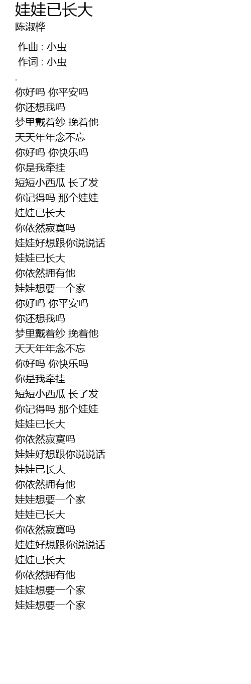 | [01:44.25] | wá wa yǐ zhǎng dà |