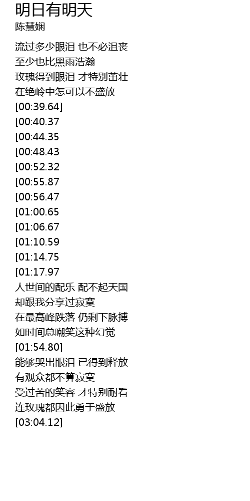 | [02:41.95][01:14.75] | Tomorrow is another day |