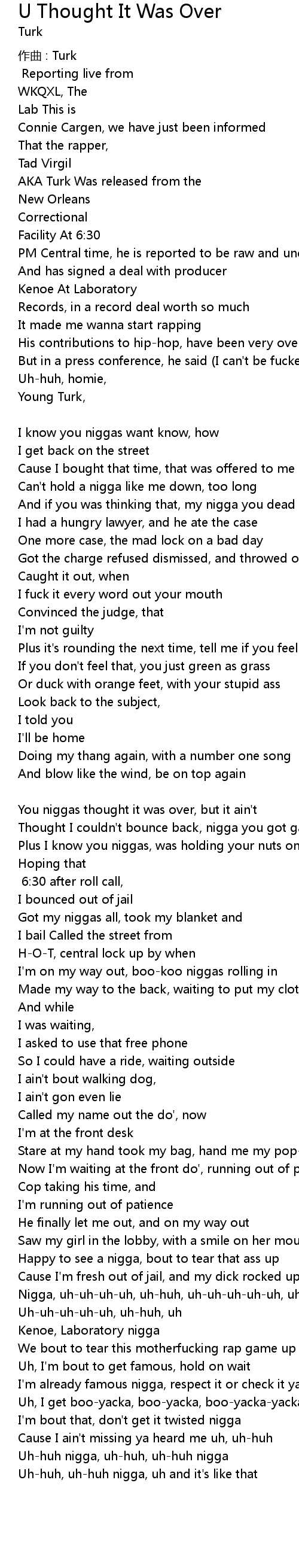 | Nigga, uh-uh-uh-uh, uh-huh, uh-uh-uh-uh-uh, uh-huh | |