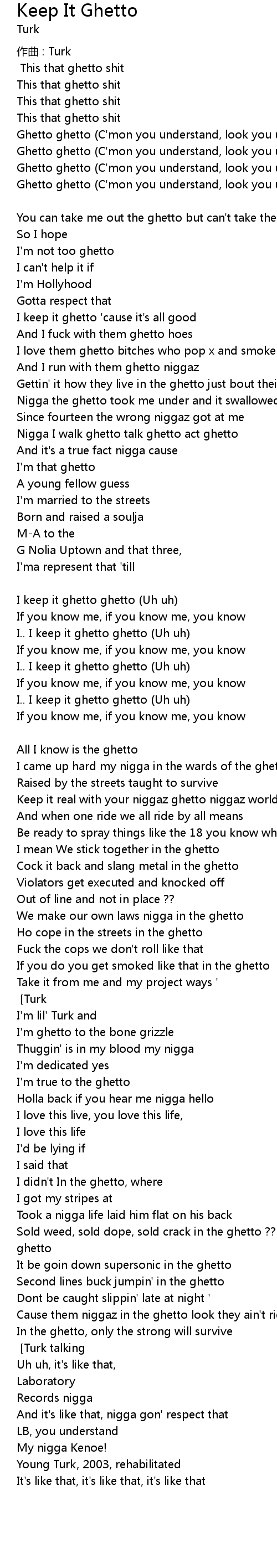 | Ghetto ghetto (C'mon you understand, look you understand, look you understand) [Turk] | |