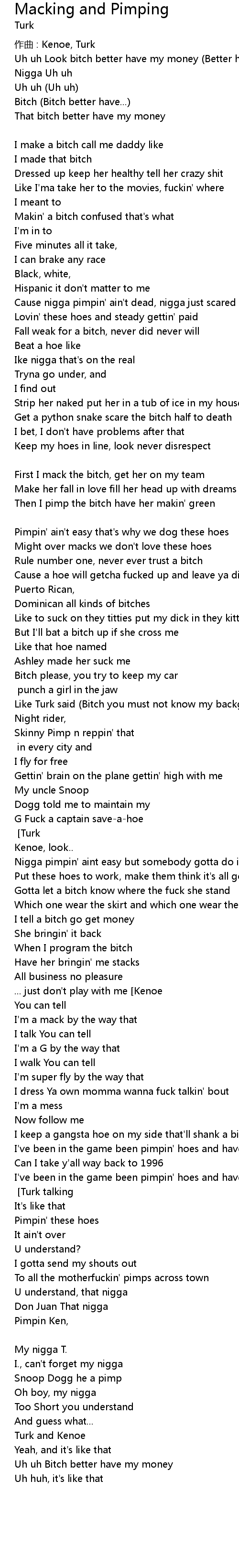 | I' ve been in the game been pimpin' hoes and have ' em suckin' dick Chorus x2: Kenoe Turk talking | |
