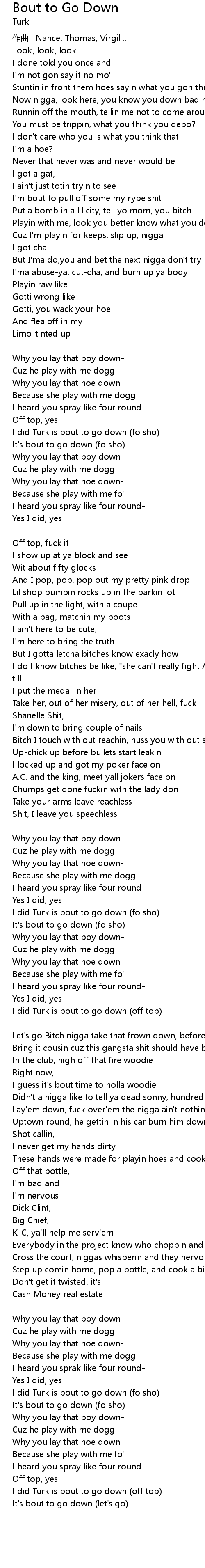| I did Turk is bout to go down, it' s bout to go down Verse 2 Christina | |