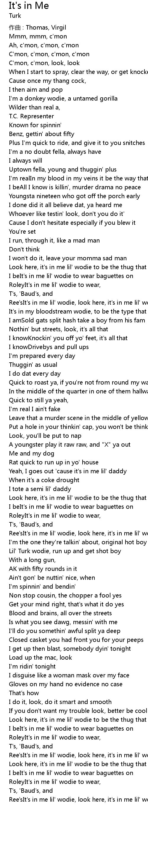 | Look here, it' s in me lil' wodie to be the thug that | |