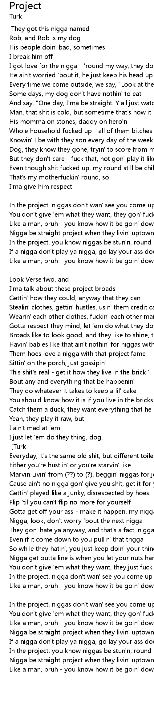 Nigga be straight project when they livin' uptown |