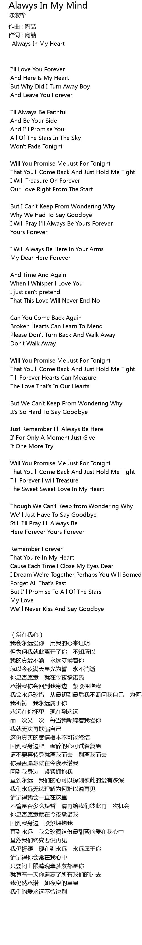 | 请记得你会常在我心中 | |