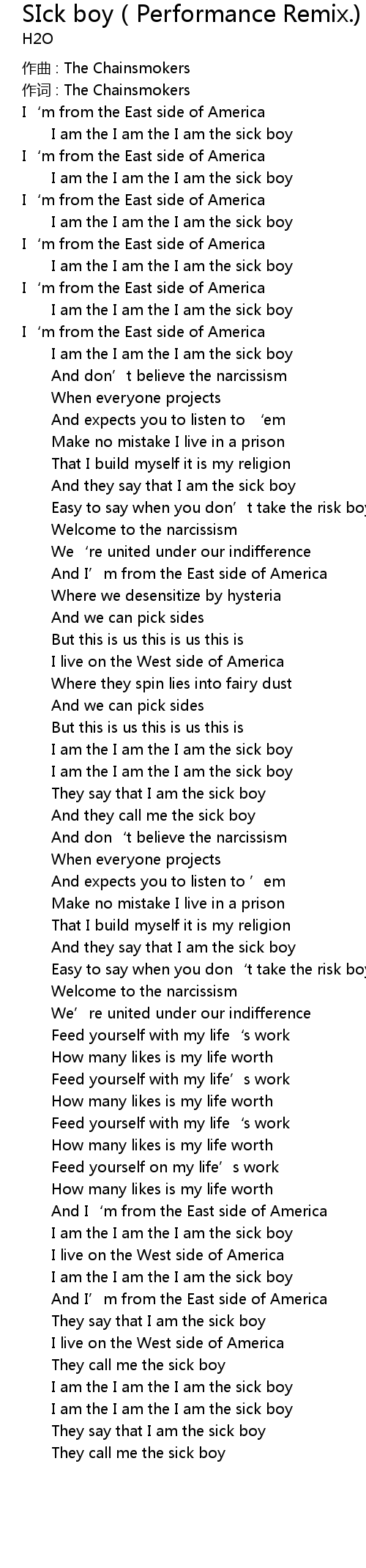 | I am the I am the I am the sick boy | |