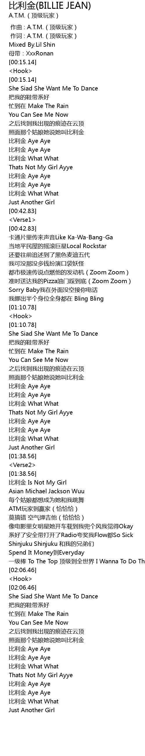 | [00:01.000] | zuò cí : A. T. M. dǐng jí wán jiā |