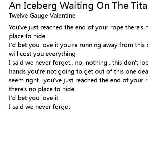 | Song | An Iceberg Waiting On The Titanic |