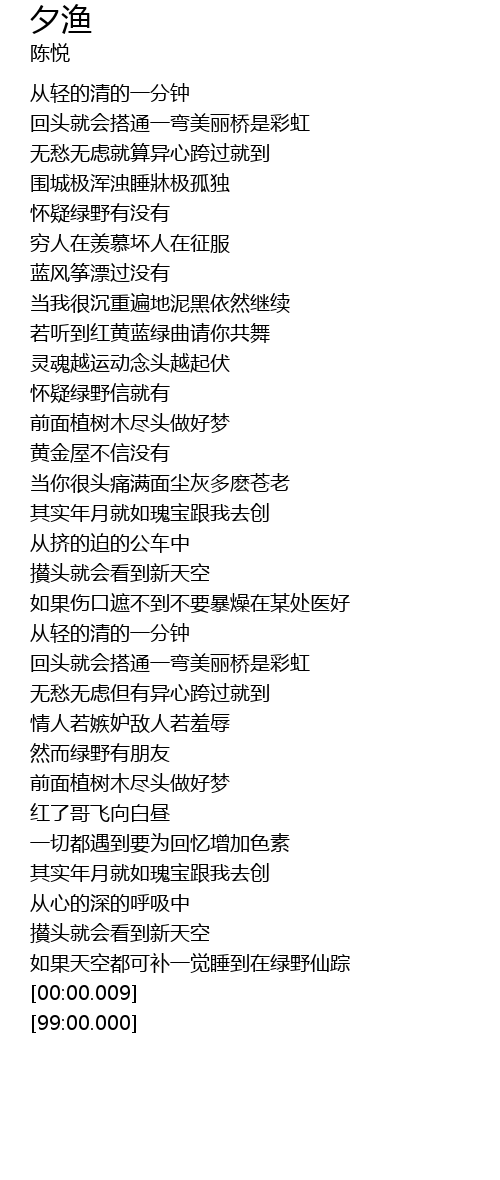 | [00:46.73] | 怀疑绿野有没有 |