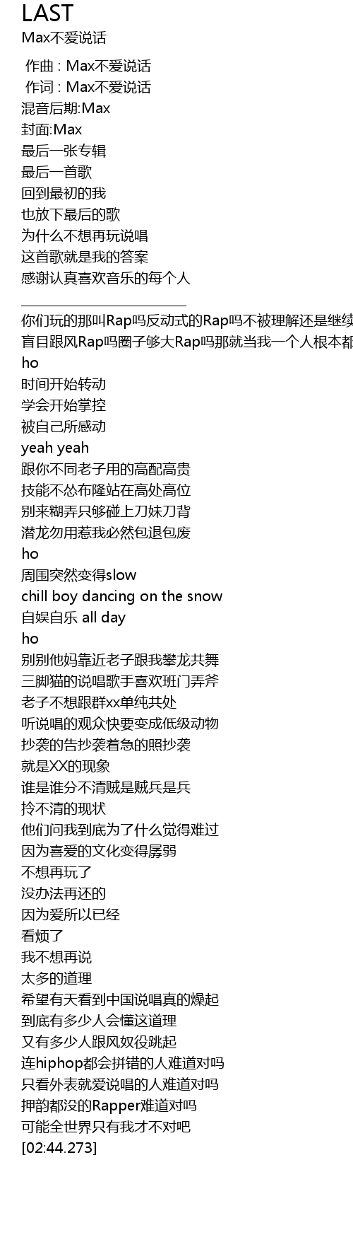 | [00:01.000] | zuo ci : Max bu ai shuo hua |