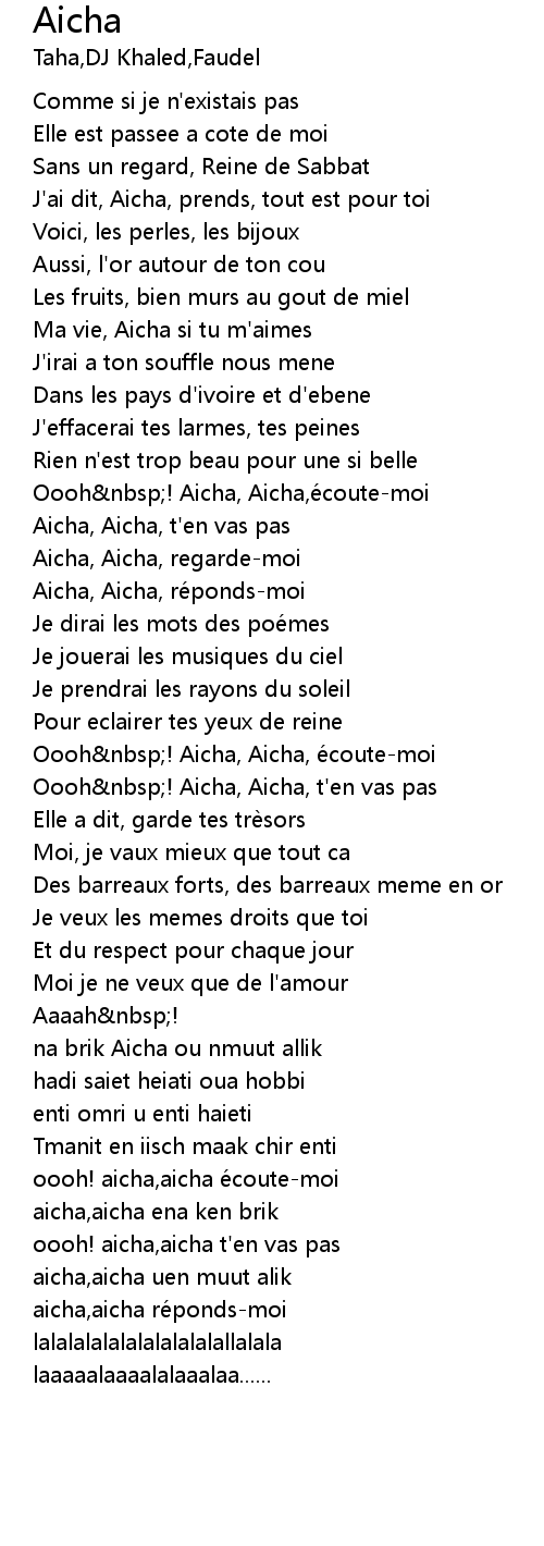 | Aicha, Aicha, ré pondsmoi | |