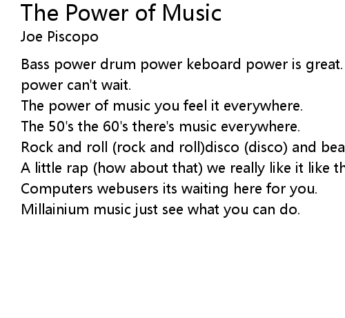 | Bass power drum power keboard power is great. string power woodwind power brass power can't wait. | |