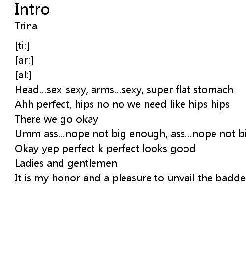 | [00:21.42] | Umm ass...nope not big enough, ass...nope not big enough, ass... |