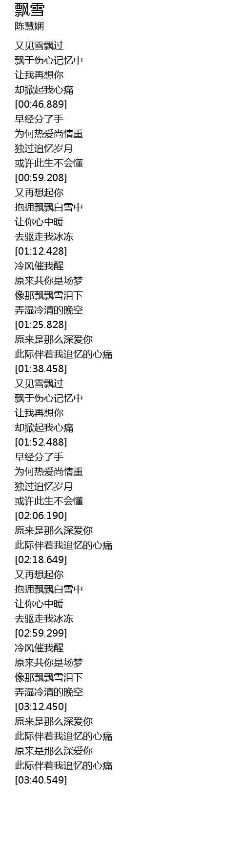 | [03:06.500] | xiàng nà piāo piāo xuě lèi xià |