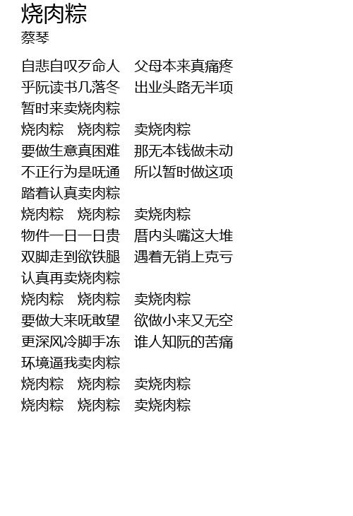 | [03:49.51] | 烧肉粽 烧肉粽 卖烧肉粽 |