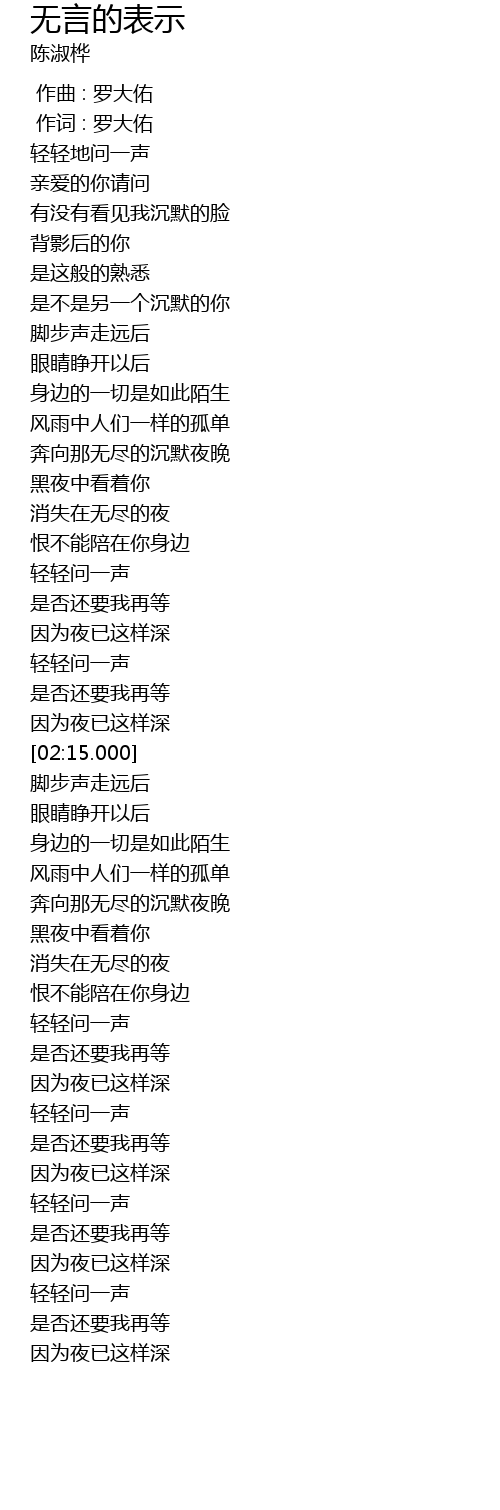 | [00:36.720] | 有没有看见我沉默的脸 |
