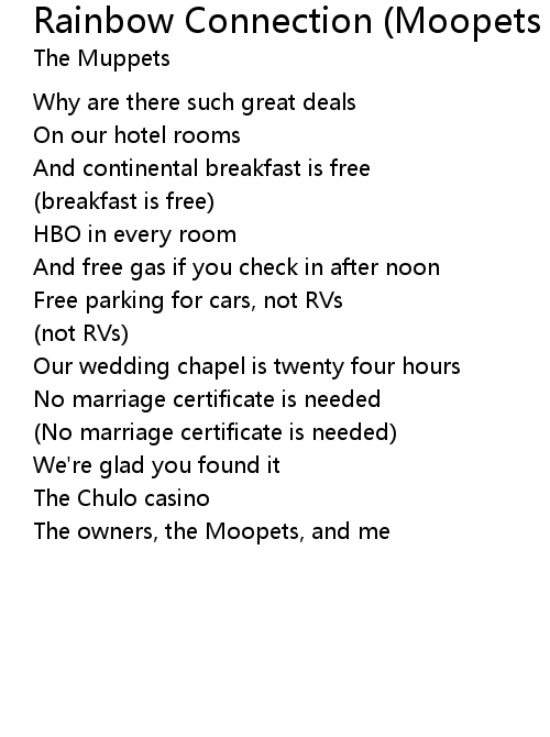| Song | Rainbow Connection (Moopets Version) |