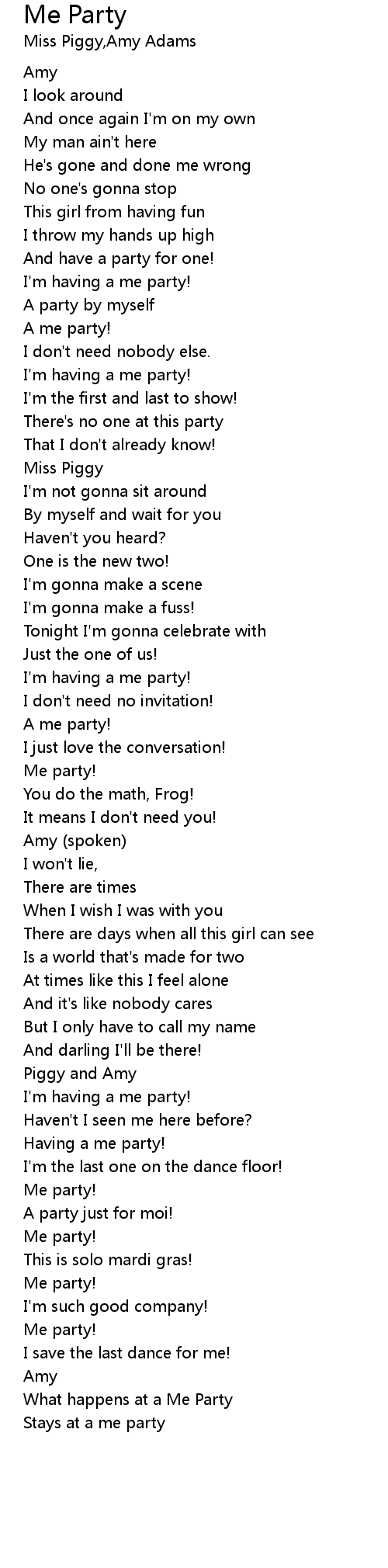 Stays at a me party |