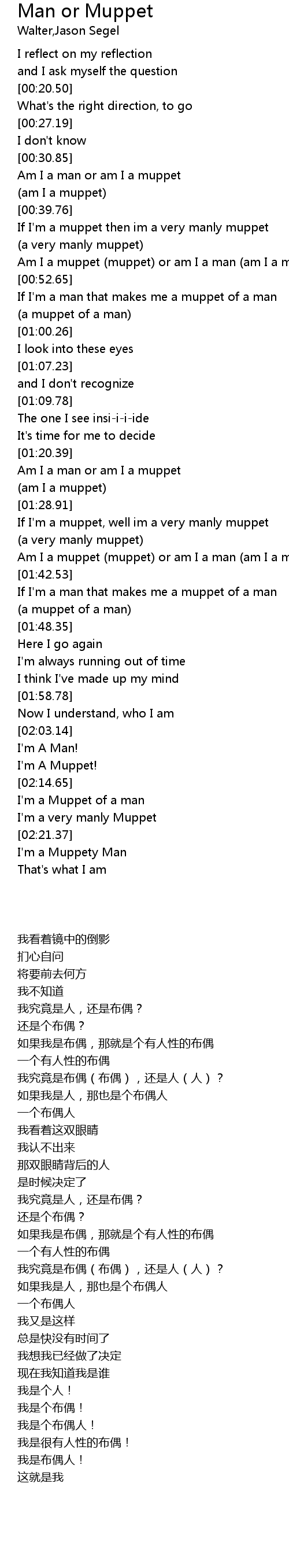 Am I a muppet (muppet) or am I a man (am I a man) |