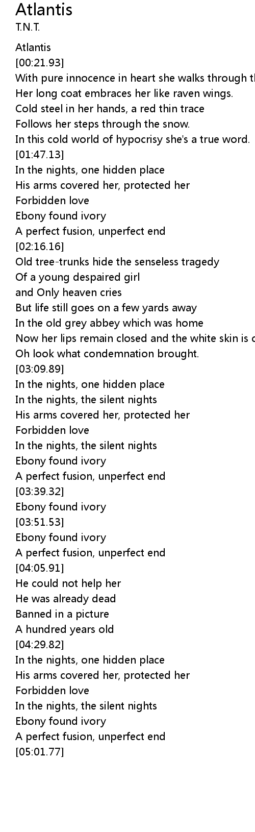 | [03:20.85] | Forbidden love |