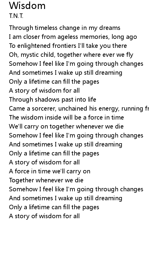 | The wisdom inside will be a force in time | |