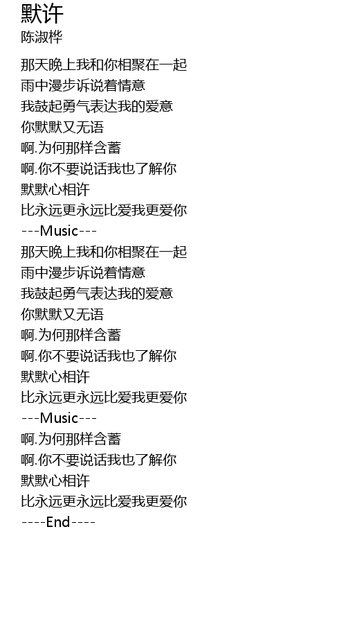 | [02:00.22] | 默默心相许 |