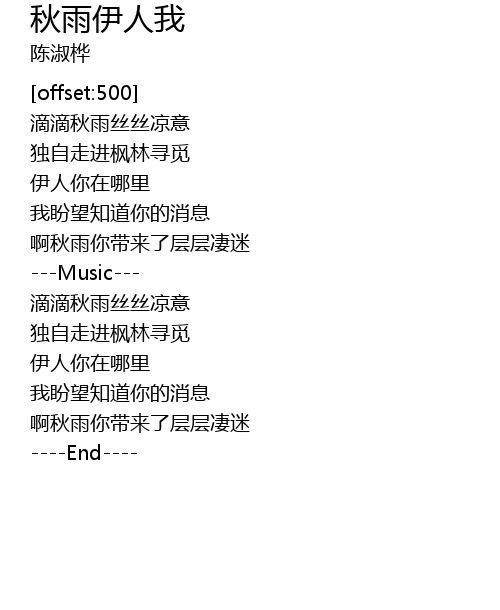 | [00:12.79] | 滴滴秋雨丝丝凉意 |